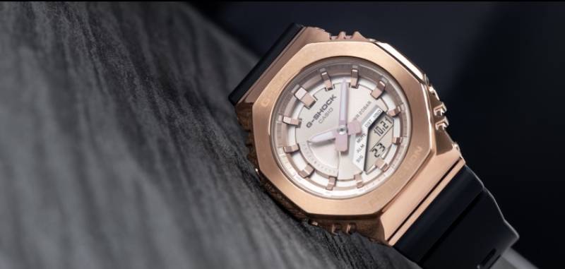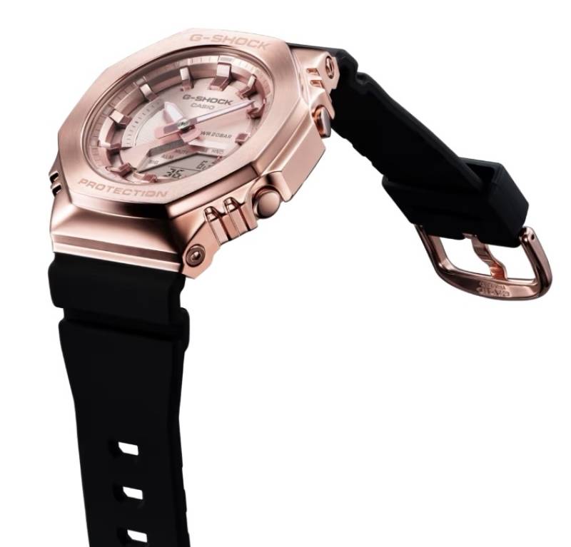 La GM-S2100PG-1A4ER a un design qui peut être considéré comme polyvalent, combinant à la fois des éléments classiques et sportifs.