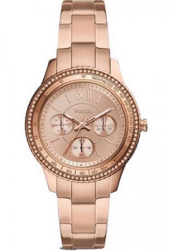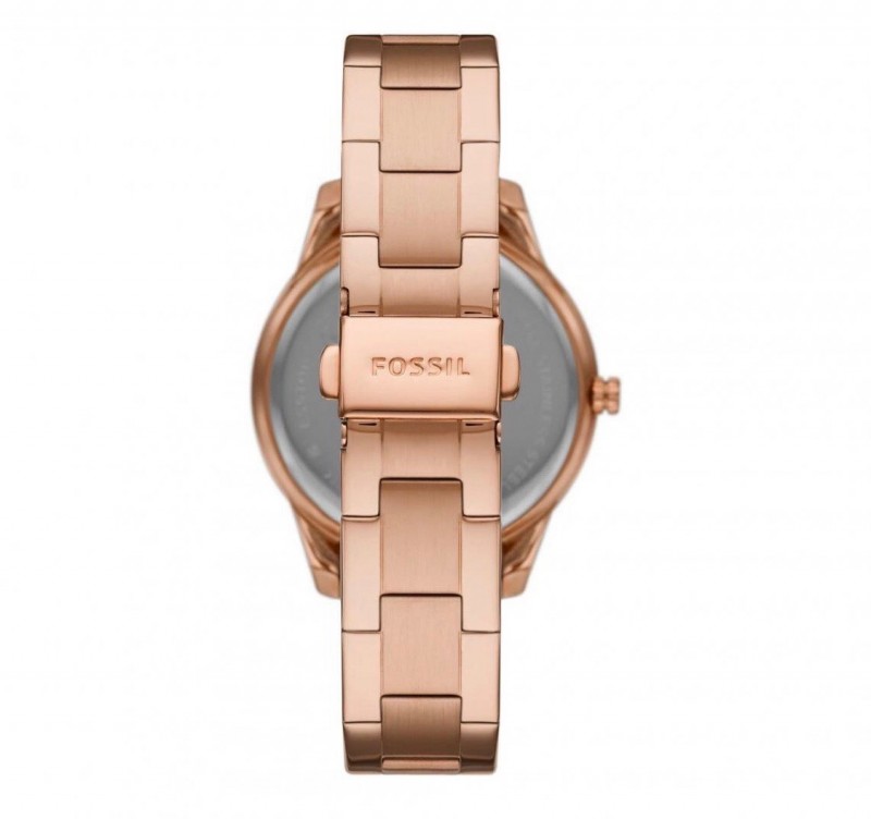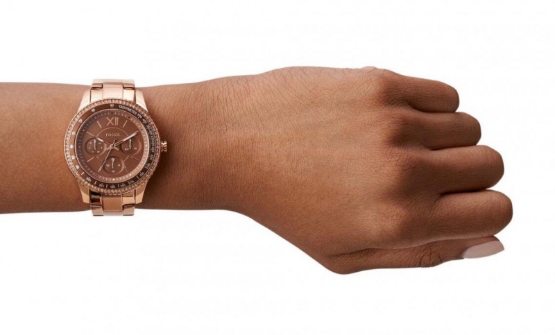 Bracelet couleur rosé, indexs rosé et cadrant marron.