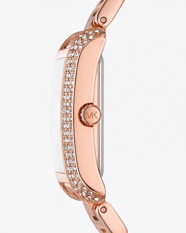 Michael Kors nous propose un nouveau style. Des montres avec un cadrant rectangulaire, c’est la nouvelle collection Emery.