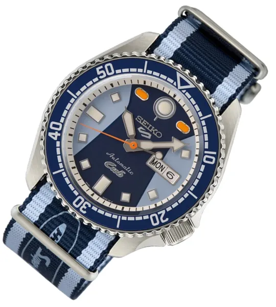 La combinaison de bleu profond et de bleu ciel confère à cette montre un charme distinctif.