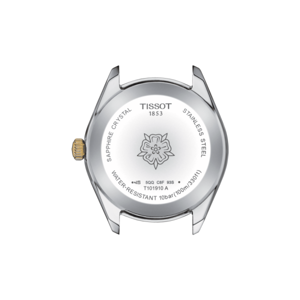 La Tissot PR100 sport chic est particulièrement robuste grâce à son étanchéité, 10 bar (100m), et à son verre saphir, inrayable.